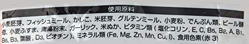 ประเภทลอยน้ำ: วีทเจิร์ม, ปลาป่น, รำข้าวที่สกัดไขมัน, กลูเตนมีล, แป้งสาลี, รำข้าวสาลี, แป้ง, ยีสต์หมักเบียร์, ผงสาหร่าย, กระเทียม, รำข้าว, วิตามิน (โคลีนคลอไรด์, E, C, B5, B2, A, B1, B6, B3, กรดโฟลิก, D3, ไบโอติน), แร่ธาตุ (Fe, Mg, Zn, Mn, Cu, I), สีผสมอาหาร (Red No. 3).