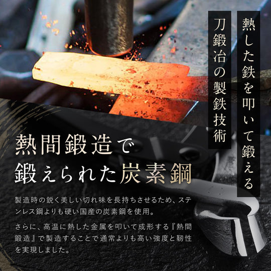 ก่อตั้งขึ้นในปี 1913 เรามุ่งมั่นในศิลปะการตัดมากว่า 100 ปี ช่างฝีมือเจ็ดคนในเมืองซันโจ จังหวัดนีงาตะ หนึ่งในสามเมืองหลักของเครื่องตัดในญี่ปุ่น ได้รับมอบหมายให้ดูแลแต่ละขั้นตอนและทำงานอย่างพิถีพิถัน ในฤดูร้อน อุณหภูมิใกล้เตาเผาสูงกว่า 60 องศาเซลเซียส และช่างฝีมือได้ทุ่มเทจิตวิญญาณลงในเหล็กที่ร้อนแดง