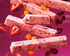 รายละเอียดผลิตภัณฑ์ช็อกโกแลตแท่งที่มีเสียงกรอบที่สนุกและเต็มไปด้วยความอร่อยของผลไม้. ส่วนประกอบ /ส่วนประกอบช็อกโกแลต (ผลิตในญี่ปุ่น) (เนยถั่วเขียว, น้ำตาล, ผงนมจืด, ผงนมทั้งหมด, แลกโตส, ผงสตรอเบอร์รี่, ผงนมข้นหวาน, ผงกล้วย), อัลมอนด์พัฟ (มีแป้งข้าวสาลี), เนยถั่วเขียว, แครนเบอร์รีแห้ง, มะม่วงแห้ง, สตรอเบอร์รี่แห้ง, /ผงแยกน้ำมัน(จากถั่วเหลือง), ตัวทำให้อากาศฟู, สีลูกปัดสีแดง, รส (ไข่มาจาก)