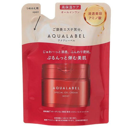 ขอแนะนำ SHISEIDO AQUA LABEL Special Gel Cream EX Moist Refill ครีมเจลบำรุงผิวที่ให้ความชุ่มชื้นสูงในหนึ่งเดียว ครีมเจลสุดหรูนี้ถูกออกแบบมาเพื่อซึมซาบลึกเข้าสู่ชั้นผิวที่มีเคราติน ช่วยเติมเต็มความชุ่มชื้นให้ผิว ทำให้ผิวดูสวยงาม นุ่มนวล และเด้งดึ๋ง มาพร้อมกับกลิ่นหอมอ่อนๆ ของดอกกุหลาบสมุนไพร ทำให้การดูแลผิวของคุณเป็นประสบการณ์ที่น่ารื่นรมย์
