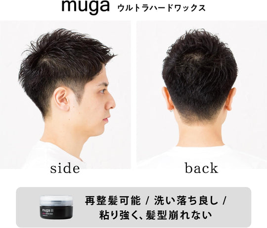 แว็กซ์ MUGA Ultra Hard Wax เหมาะสำหรับผู้ที่ต้องการการจัดทรงที่แข็งแรงและคงทนยาวนาน เหมาะสำหรับการสร้างลุคที่ชัดเจนและมีโครงสร้างที่อยู่ทรงตลอดวัน ด้วยสูตรที่แข็งพิเศษ ให้การควบคุมและความทนทานสูงสุด ใช้ได้ทั้งผมสั้นและยาว แว็กซ์นี้ใช้ง่ายและช่วยให้จัดทรงได้อย่างแม่นยำโดยไม่ทิ้งคราบเหนียว