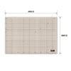 โครงสร้างแบบแซนด์วิช PVC นุ่ม-แข็ง-นุ่ม ทนทาน: ชั้นนอกทั้งสองด้านเป็น PVC นุ่ม ยืดหยุ่น แกนกลางเป็น PVC แข็ง เพื่อต้านการเจาะทะลุและการบิดงอ ด้านหน้าสีเทาอ่อนสบายตา ด้านหลังสีน้ำตาลโทนสงบ; ทั้งสองด้านมีตาราง 1 cm เพื่อวัดได้รวดเร็ว ขนาด: 320 × 450 × 2 mm (12.6 × 17.7 × 0.08 in). วัสดุ: ผิวหน้า 75% PVC รีไซเคิล แกนกลาง 80% PVC รีไซเคิล ใส่ใจสิ่งแวดล้อม และเป็นไปตามกฎหมายการจัดซื้อสีเขียวของญี่ปุ่น (GPN).