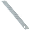 แพ็ก 10 ชิ้นในกล่องพลาสติก ผลิตจากเหล็กกล้าเครื่องมือผสม เข้ากันได้กับคัตเตอร์ใบมีดขนาดเล็กส่วนใหญ่ที่ใช้ใบมีด 9 mm. ความกว้างใบมีด: 9 mm; ความหนาใบมีด: 0.38 mm.