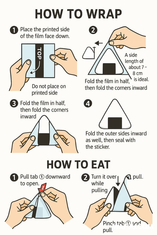 Deniz yosununun çıtır dokusunu keyifle yaşamanızı sağlayan pratik bir onigiri pirinç topu filmi sunuyoruz. Bu kullanımı kolay ambalaj çözümü, evde market tarzı onigiri yapmanıza olanak tanır. Öğle yemeği kutuları hazırlamak veya okul gezileri ve piknikler gibi özel günler için mükemmeldir, ekstra kolaylık için kesik bir bant içerir. Basit deseni sayesinde çok yönlü ve kullanıcı dostudur. Pirinç topunu sarmadan önce soğuduğundan emin olun ve ateşin yanına koymaktan veya mikrodalgada kullanmaktan kaçının. Pirinç topunu filmin baskılı yüzeyinden uzak tutmayı unutmayın.