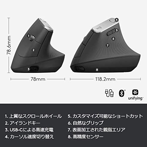 Logicool MX Vertical Ergonomik Kablosuz Fare 6 Buton Grafit