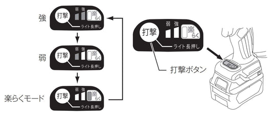Kompakt ve hafif darbeli vidalama makinesi; 135 N·m’ye kadar maksimum sıkma torku sunar. İşe göre güç ve kontrol dengesini ayarlamak için Güçlü, Zayıf ve Kolay olmak üzere üç moddan birini seçin.