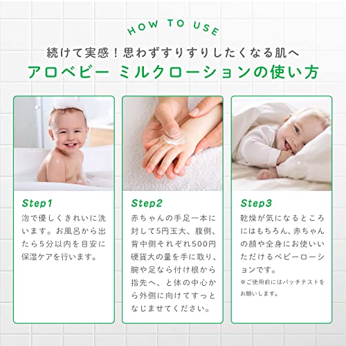 Sữa dưỡng trẻ em ngăn chặn da khỏi bị khô và cung cấp độ ẩm. Sản phẩm này được sử dụng cho việc chăm sóc dưỡng ẩm hàng ngày, như sau khi tắm hoặc vào buổi sáng. Trong mùa khô, hoặc cho các khu vực mà độ khô là một vấn đề, việc thoa một lớp thêm Dầu hoặc Kem dành cho bé là hiệu quả. Sản phẩm này cũng phù hợp cho những người muốn có khả năng dưỡng ẩm cao hơn. Nó có thể được sử dụng trên khuôn mặt và cơ thể của trẻ sơ sinh và trẻ nhỏ.