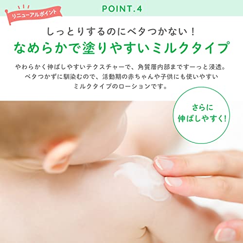 Sữa dưỡng thể cho bé chứa nhiều thành phần dưỡng ẩm tự nhiên giống như sebum, như dầu jojoba và bơ hạt mỡ, giữ cho làn da của bé mềm mịn và khỏe mạnh. Sản phẩm này được khuyến nghị cho những người lo lắng về da khô và da thô, nhưng muốn chăm sóc làn da của con mình mà không cần dùng thuốc. Nó cũng phù hợp cho những người sử dụng các loại kem dưỡng ẩm khác, nhưng thấy khả năng dưỡng ẩm của chúng không đủ, hoặc những người không thích các sản phẩm bết dính và muốn một thứ dễ dàng thoa lên.