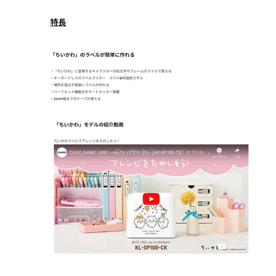 CASIO Máy in nhãn kết nối điện thoại i-ma Chiikawa KL-SP100-CK 24mm