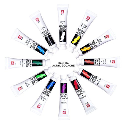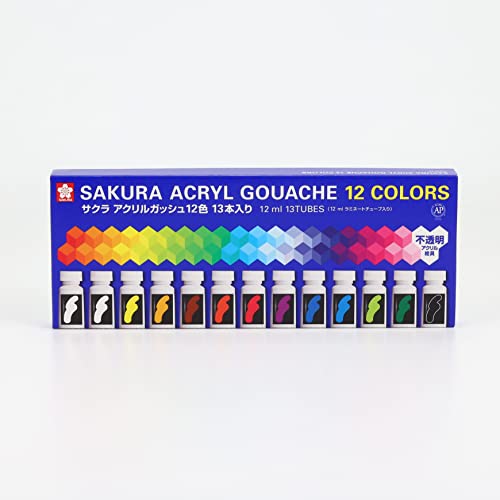 Bộ Sơn Acrylic Gouache Sakura 12 Màu 13 Tuýp AGW13 12ml