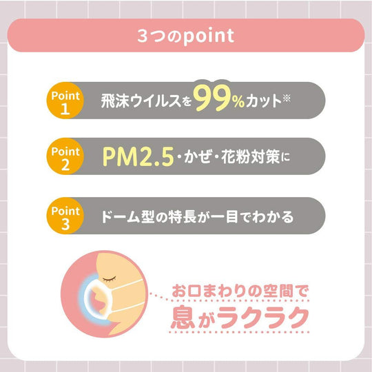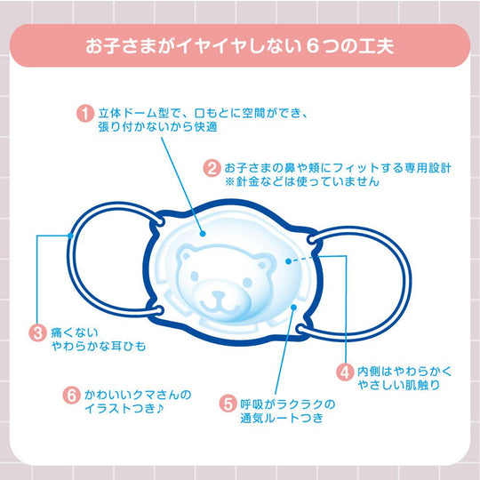 Chiếc mặt nạ này dành cho trẻ em từ 2 tuổi trở lên có hình dạng như một chiếc đ Dome ba chiều tạo ra không gian xung quanh miệng. Nó rất thoải mái vì không bị dính.
