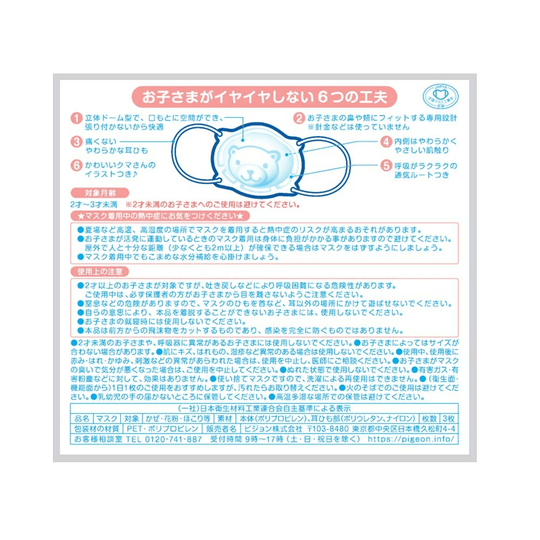 Pigeon Khẩu trang trẻ em 2 tuổi trở lên hộp 3 cái thoáng khí an toàn