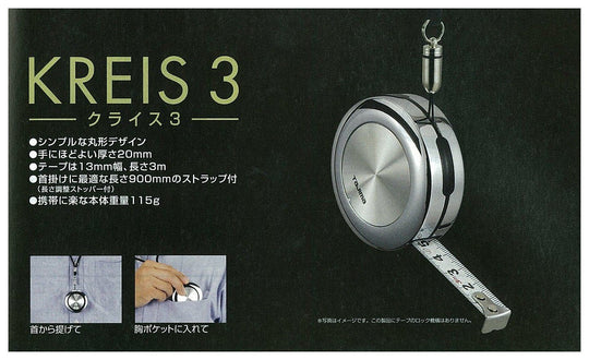 Thước cuộn này có thiết kế gọn nhẹ và thời trang, với kiểu dáng tròn đơn giản, kết hợp giữa tính năng và thẩm mỹ. Sản phẩm đi kèm với dây đeo dài 900 mm, cho phép bạn treo quanh cổ để dễ dàng tiếp cận khi sử dụng. Thước được thiết kế dễ mang theo và thoải mái, với độ dày 20 mm vừa tay bạn.