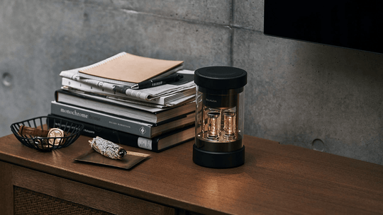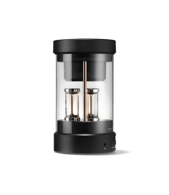 BALMUDA The Speaker tạo ra một cảm giác như đang ở trên sân khấu trực tiếp với âm thanh rõ ràng, ba chiều 360° và sự tinh tế làm tăng nhịp điệu. Loa này có thể sạc lại, di động, và tương thích với Bluetooth và AUX input.