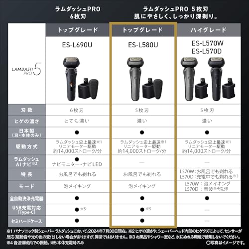 松下 Lamdash Pro 5刀片电动剃须刀 ES-L580U-S 银色 男士剃须器