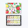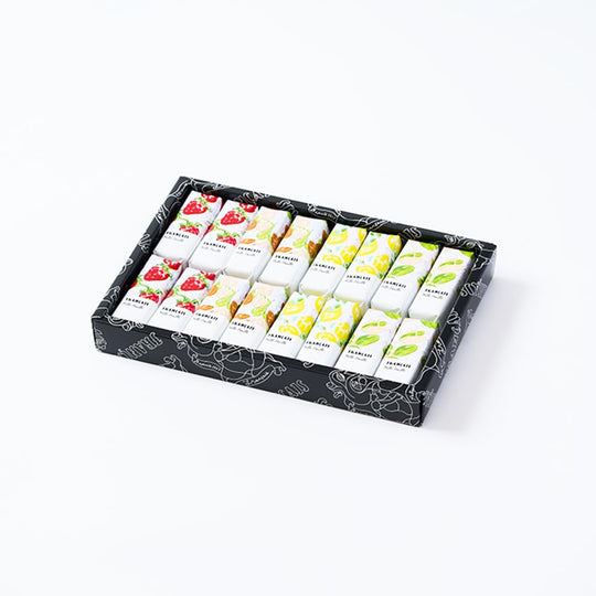 - 内容:草莓、柠檬、开心果和榛子巧克力口味各四块。 - 保质期:自生产日期起80天(见包装侧面)。产品发货时至少保证剩余15天的保质期。 - 储存说明:请存放在低于25°C的阴凉处,避免阳光直射和高湿环境。注意:巧克力在超过28°C会变软,重新凝固后可能会出现白色脂肪霜,不影响产品质量。