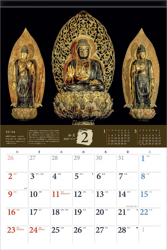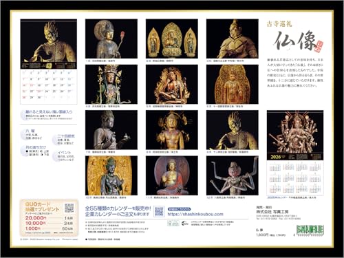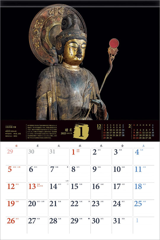 这款精美设计的月历展示了佛像的魅力世界,带您领略日本丰富的历史与文化。每个月都精选一座重要的佛像,以高质量、色彩鲜艳的印刷呈现,让您感受其艺术与精神价值。日历设计周到,闭合时尺寸为300毫米(高)x 400毫米(宽),展开时为600毫米(高)x 400毫米(宽)。配有透明支架,防止照片顶部卷曲,确保全年图像保持完美无损。这款日历不仅是组织行程的功能工具,还是颂扬日本文化遗产的一件有意义的艺术作品。