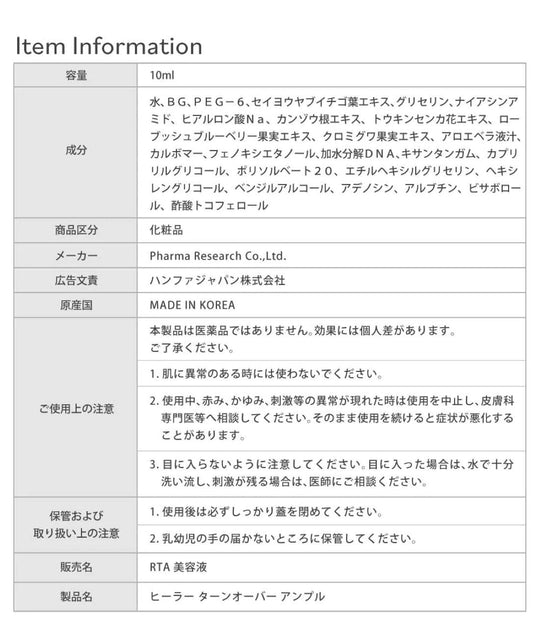 本产品不是药物,其效果因人而异。如果您有任何皮肤问题,请勿使用此精华。使用过程中如出现红斑、瘙痒、刺激或其他皮肤问题,请立即停用,并咨询皮肤科医生或专业人士。继续使用可能会加剧症状。避免接触眼睛,如不慎接触,应立即用大量水冲洗并如刺激持续应寻求医疗建议。