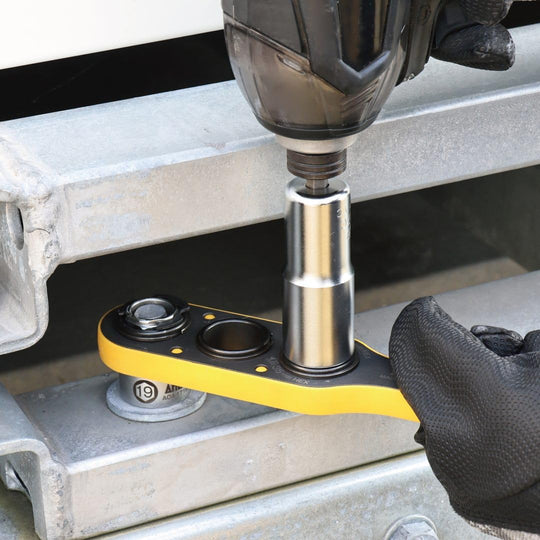 在狭小空间更快拧紧螺栓。这款 17 mm 偏置转接头可在直柄工具无法到达之处驱动紧固件,最大输出 230 Nm。可直接用于 17 mm 螺母与螺栓,或配合随附的 12 角套筒扩展至 8-21 mm;通孔设计可越过螺纹杆。