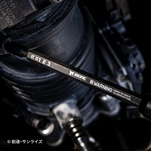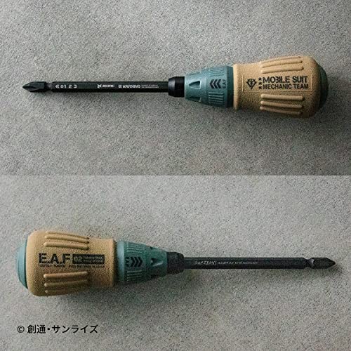 这款创新的双向螺丝刀灵感来源于吉翁公国军队机械师维护他们的机动战士时使用的工具。这是对提供给地球区域军的装备的一种致敬,特别是加尔玛·扎比上校和第二地面机动师的普通士兵。设计可适应四种螺丝尺寸(+1,+2,+3,-6),这款多用途工具能够通过简单地拉出和替换轴来处理所有常见的螺丝。螺丝刀配有缓冲手柄,确保牢固的握持力和高效的扭矩传递,不会滑脱。手柄末端饰有标志性的吉翁公国徽章,为工具增添独特的触感。此外,轴上激光标记了功能描述、警告、ZEONIC标志及机械团队的签名,增强了其真实性和吸引力。轴尖部分具有磁性,便于持有螺丝和小物件,从而防止丢失并提高工作效率。