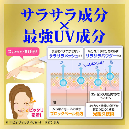 為您介紹這款極致的UV防護精華型防曬霜,是Skin Aqua系列中最強UV阻隔效果的產品。這款防曬霜塗抹均勻,與皮膚貼合良好,使用時能順滑融入肌膚。其保濕質地讓您的皮膚感覺舒适且光滑,就如同裸膚一般,即便流汗也無黏膩感。獨特配方含有一種成分,能預防UV阻隔功能因光線而降解。