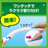 使用該產品,首先根據指示把背扣上的兩爪對準插座。沿著箭頭方向推第三個扣環,直到扣環彈出並固定住。 將特殊的支架放在平面上,然後將手柄壓好放置。要使用可沖洗的馬桶刷替換組件,剪下虛線位置。取出帶有洗潔劑的刷子並逐一切掉。將帶洗潔劑的壁掛式刷子固定在特殊支架的手柄上。將刷子放入坑洼內2-3秒,然後清洗馬桶內側。將藍色的按鈕推向上面,並將刷子丟進馬桶中。使用後,刷子可以作為可燃垃圾處理掉。