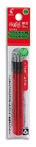 此產品是Frixion Ball 3擦除式三色圓珠筆的3瓶補充墨水。墨水顏色為紅色,墨水類型為凝膠墨。筆珠直徑為0.5毫米。這些補充瓶專為Frixion Ball Slim筆設計,該筆體秀長且直徑最大為3.6毫米,總長87.5毫米。每包裡有3支筆。Frixion Ball筆以其獨特的功能知名——被磨擦時會消失。筆的墨水可更換,即使墨水用完後,您也可以繼續使用筆。本套產品的顏色趨勢為紅色。