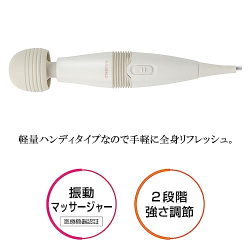 感受這款家用電動按摩器的治療觸碰,它是一種受控的醫療設備,旨在提供舒緩和放鬆。擁有醫療器材認證,你可以相信其質量和有效性適合個人使用。該按摩器運行在 AC100V 50/60Hz 上,功耗為 10W,確保在其評定操作時間20分鐘內有效使用能源。它提供兩種震動設定:一種是約每分鐘6700 次的快速模式,可提供更強烈的按摩;另一種是約每分鐘5200 次的慢速模式,以柔和方式進行按摩。該設備的人體工學設計,振動頭直徑約6公分,總長度約30公分,使其易於操作和在不同身體部位操作。該按摩器重約420 克,輕巧到不會造成負擔。按摩器還配有一條2米長的電源線,方便活動和伸手可及。