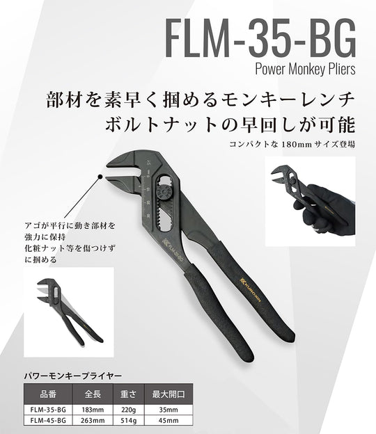 富士屋 Power Monkey 鉗子 183mm 最大開口 35mm FLM-35-BG 黑金