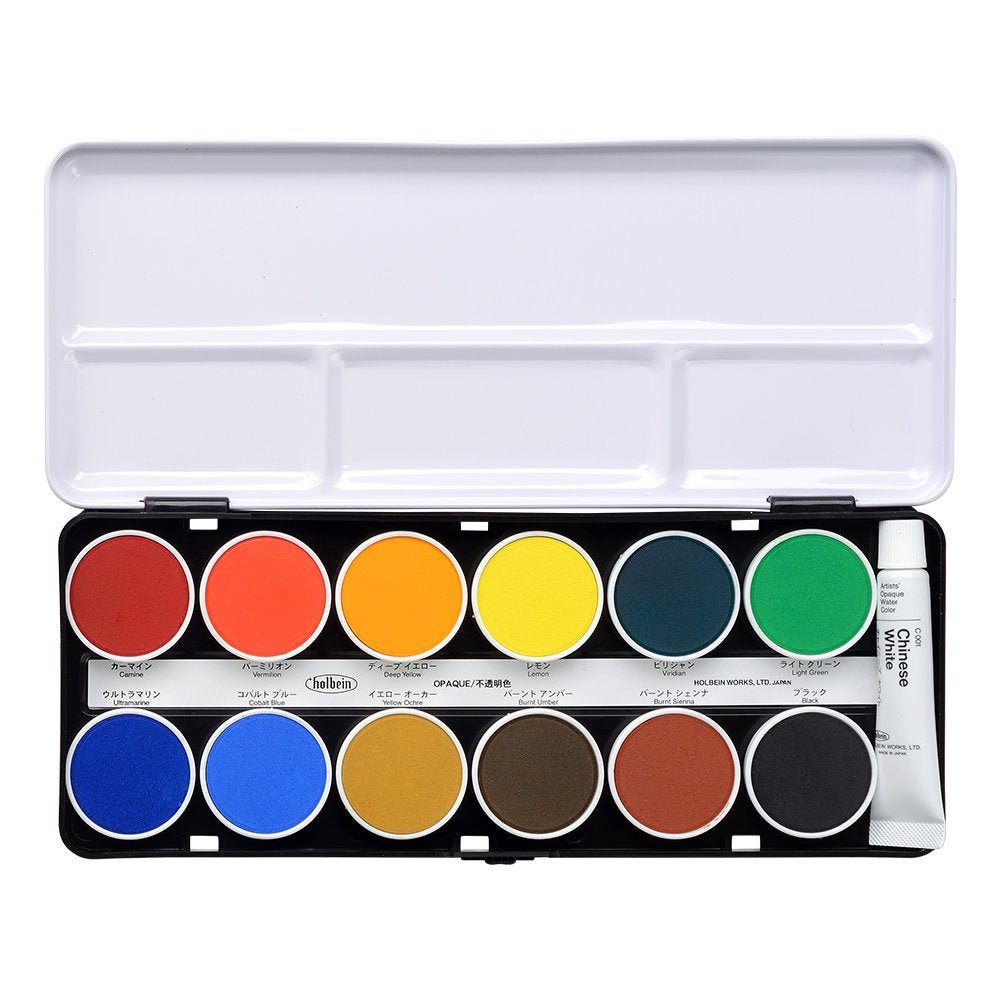 體驗濃郁多彩的傳統日本色彩世界,選用我們的不透明水彩畫套裝。這套裝含有12種精緻色彩,每種色彩裝在15毫升的管中,非常適合欣賞精心挑選顏料的藝術家使用。包括的顏色有胭脂紅、花瓣紋、小豆色、交叉黃、綠藍、海松茶、新橋青、孔雀藍、芍藥紅、利休鼠、藍墨、藍金。這些顏料靈感來自於四季的變化與自然景致,提供了歷史上一直珍愛的精緻色調。
