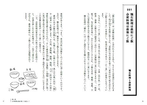 -----日式餐廳需要預約,而割烹店則無需預約。"料亭"一詞是由餐廳、而非顧客所 使用。"菜單"對於學校午餐有點怪嗎?"菜單"一詞的原義是"配合酒精飲料服用"。菜單中所使用的漢字能夠表達出大廚的想法。紅色的茄子和甜瓜和南瓜的涵義是什麼?日本料理中沒有片假名。如果您像中國數字"1"一樣供應它,您的丈夫將在世界上崛起。正確的打開樽蓋的方法是用右手順時針旋轉。日本料理可能單手上菜,但是只能在巴掌大小的碗中。隱藏碟子是禮仪,不要將其放在桌子上。當你吃完一半的魚時,用筷子拔出骨頭。剩下的湯可以放心飲用。剛吃完的剩湯也可以直接飲用。不要把湯從陶罐直接送到嘴里。如果您告訴壽司廚師您的預算並交給他或她,那麼您和廚師將會更滿意。蓋子應該放在碗的右側,背面向上。扁魚刺身盤中的哪一側應該吃,內側或外側?