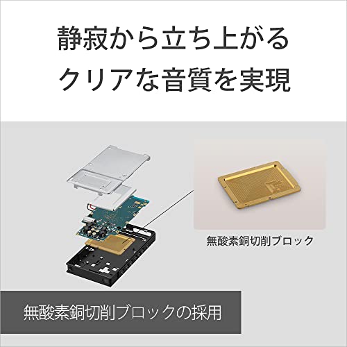 高性能全數字擴音機'S-Master HX'支持高分辨率播放 (*1) 和高輸出,包括DSD原生播放(最高11.2MHz) (*2) 和線性PCM播放(最高384kHz/32bit)。非平衡連接提供50mW+50mW(16Ω)輸出,而平衡連接提供230mW+230mW(16Ω)。在任何音量水平都可以享受到具有強大低音能量和速度以及細膩空氣感的高品質聲音。