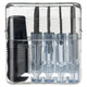 組合包括以下螺絲起子尺寸:+00、+0、+1、+2、1.8、-3、-6,以及一個帶磁性的鑽頭。外殼由PET樹脂製成,耐用且易於儲存。包裝尺寸為8.9 x 8.5 x 2.9公分,總重量為0.15公斤。此外,螺絲起子頭部均具磁性設計,增加使用上的便利性。