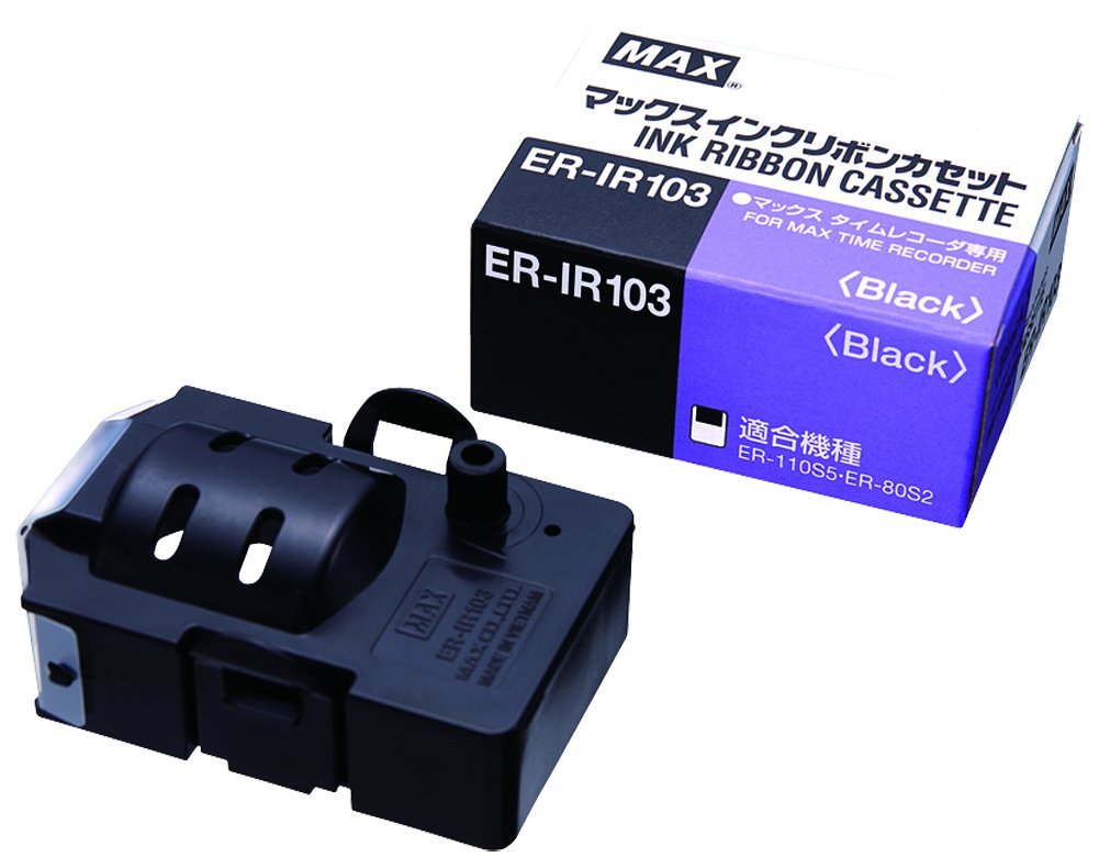 這款色帶專為 Max 打卡鐘設計,適用於 ER-80S2、ER-80S2W、ER-110S5 和 ER-110S5W 等型號。色帶為黑色,重量為 24 克。它是無限循環的設計,可以重複使用而不影響使用壽命。