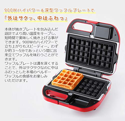- 規格變更:2019 年 11 月 1 日變更型號。“Vitantonio Waffle & Hot Sand Bakers VWH-30-R”型號的繼任者。設計和配件與以前的型號不同。 [改動] 主機的設計、尺寸和重量,配備定時器設置轉盤,包括換版,包裝設計