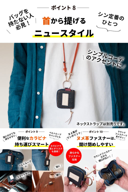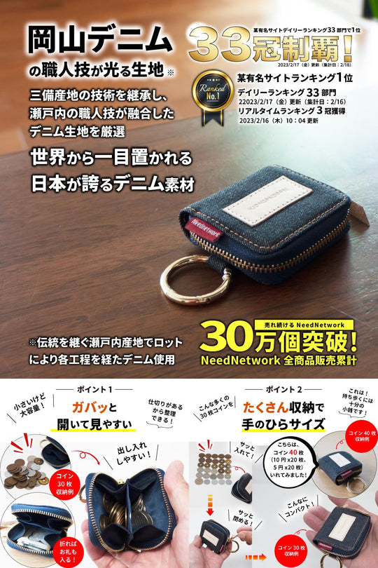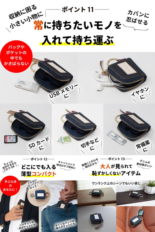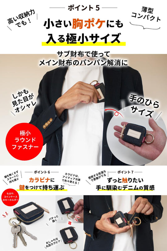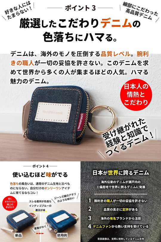 日本岡山牛仔布硬幣包鑰匙扣 迷你大容量設計 6x6cm