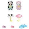 這套雨天主題的嬰兒組合非常適合托兒所使用。包含可愛的雨傘、長樣式的護目鏡和水坑,您可以享受雨天散步的樂趣。雨傘可以放在嬰兒的手中。嬰兒身穿印有雲朵圖案的可愛雨衣。長靴子可以穿在嬰兒身上。嬰兒棉花糖老鼠的名字叫做艾伯特,嬰兒熊貓的名字是安吉拉。這套玩具可以與另外售賣的其他嬰兒和小型嬰兒一起玩耍。