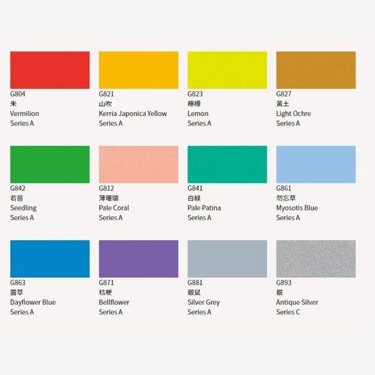 水粉畫套裝包括自古以來一直受到珍視的傳統日本色彩。這些色彩捕捉了日本變化季節的美,呈現出細膩的色調和靈感來自自然的名稱。該套裝提供總共48種顏色,每種顏色都呼應日本四季,讓藝術家能夠創作反映日本藝術豐富文化遺產的作品。