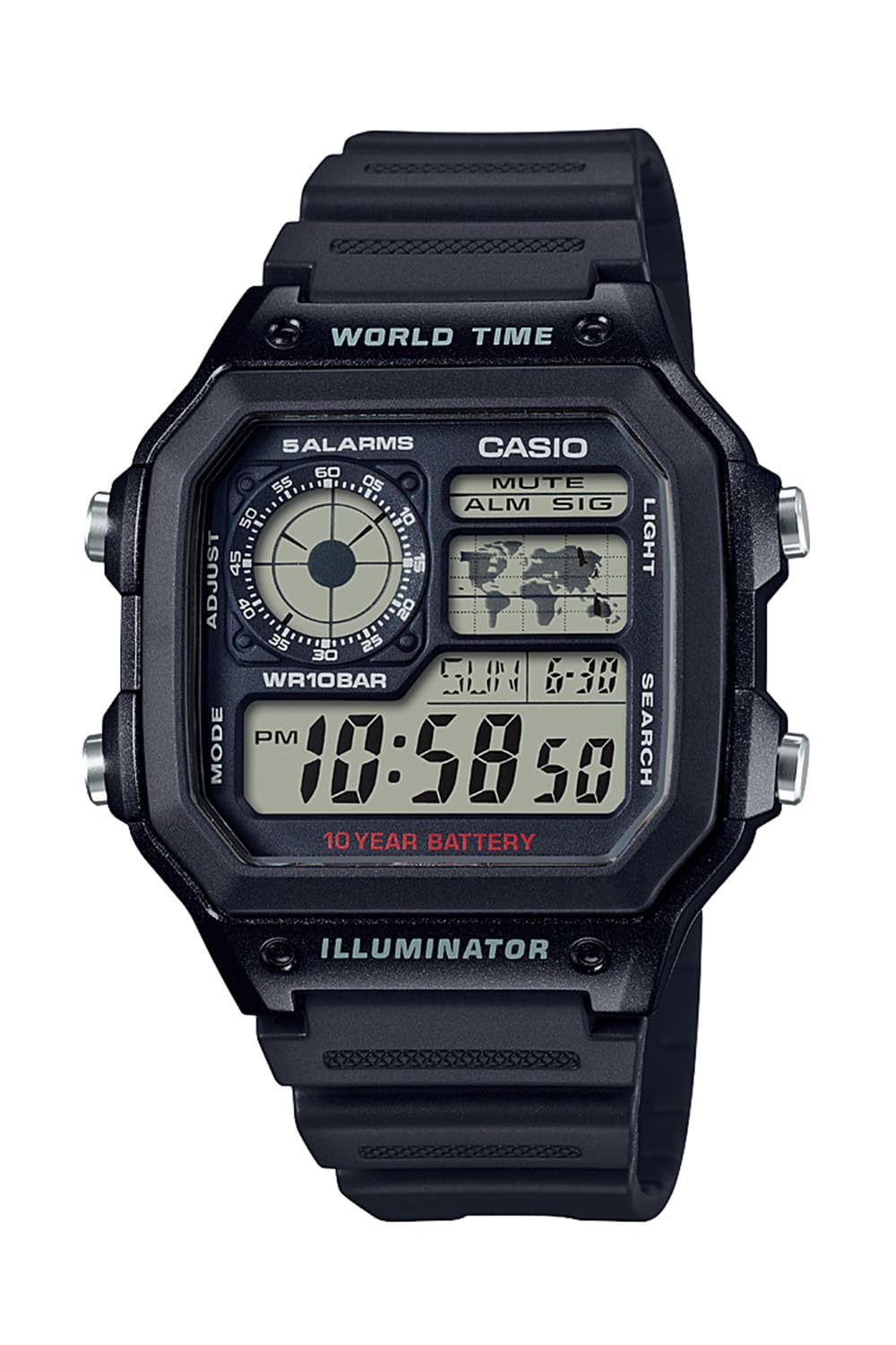 CASIO Collection 數位手錶是一款多功能的時計,專為實用性和耐用性而設計。它具備堅固的 10 ATM 防水性能,適合各種與水相關的活動。手錶配備 LC 模擬顯示,即使在使用其他功能如秒錶時,也能始終顯示本地時間。右上角的世界地圖顯示當前的時區,為其功能增添了全球視野。擁有 10 年電池壽命、LED 背光和一系列可靠的功能,這款手錶非常適合日常使用和旅行。