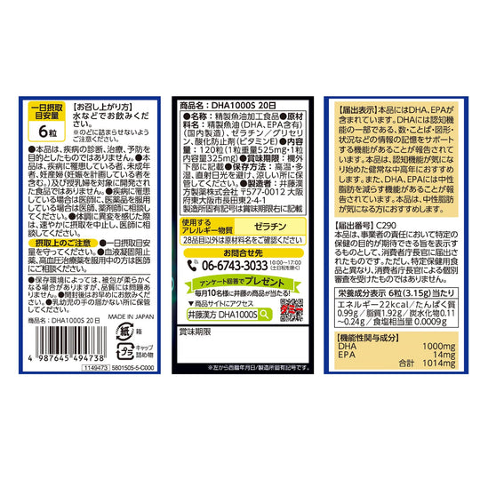 - 功能性成分(每6顆膠囊):DHA/1,000毫克,EPA/14毫克,總共1,014毫克 - 膠囊類型:軟膠囊 - 建議每日攝取量:每天6顆膠囊 - 包裝設計:方便食用和儲存