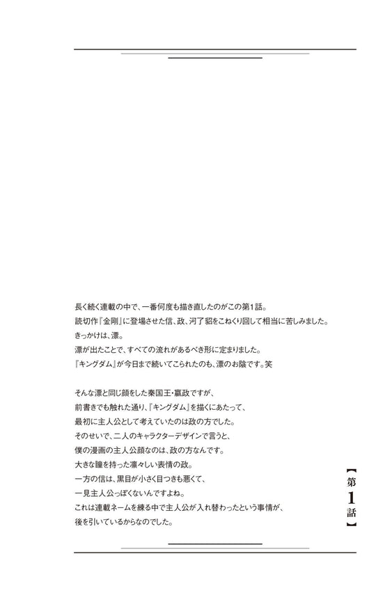 此外,完全版包含彩頁,忠實再現了原本在《週刊YOUNG JUMP》中刊出的色門插圖。許多未在原來漫畫中刊出的畫面也收錄其中,帶給讀者更豐富的視覺享受。作者原泰久對每個故事提供深入解說,分享幕後珍貴的心得和探索「Kingdom」宇宙的複雜細節。