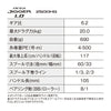 - 傳動比:6.2 - 最大拖力:20.0 公斤 - 空機重量:690 公克 - 捲筒直徑/寬度:60 毫米 / 33 毫米 - 捲筒容量(PE 線):3 號 - 670 米,4 號 - 500 米,5 號 - 400 米