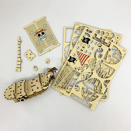 Ki-gu-mi 木製 3D 拼圖 海賊王 Going Merry 船 DIY 教育玩具