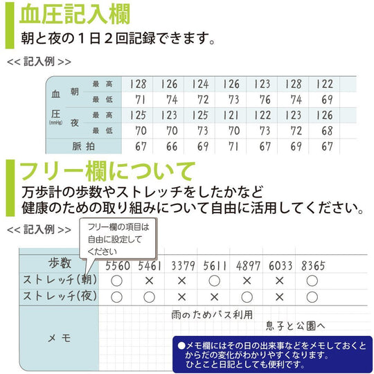 筆記本內含實用的健康資訊,例如如何計算標準體重和BMI。還有關於血壓和代謝症候群的專欄,提供寶貴的見解來支持您的健康旅程。